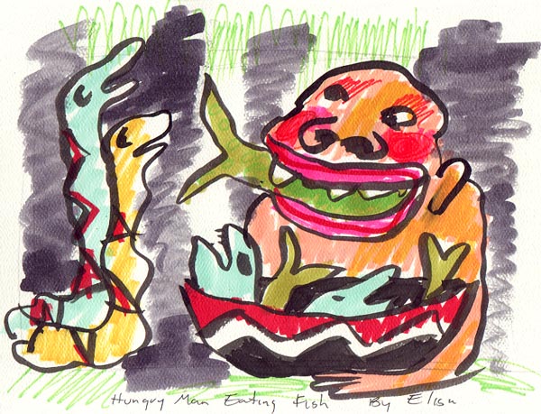 Hungry Man Eating Fish