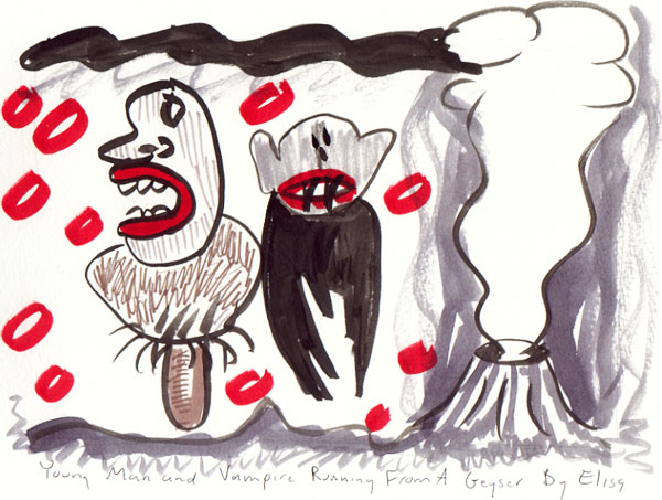 Young Man And Vampire Running From A Geyser