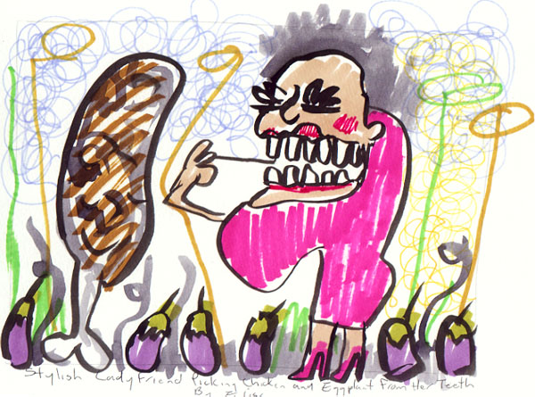 Stylish Lady Friend Picking Chicken And Eggplant Out Of Her Teeth